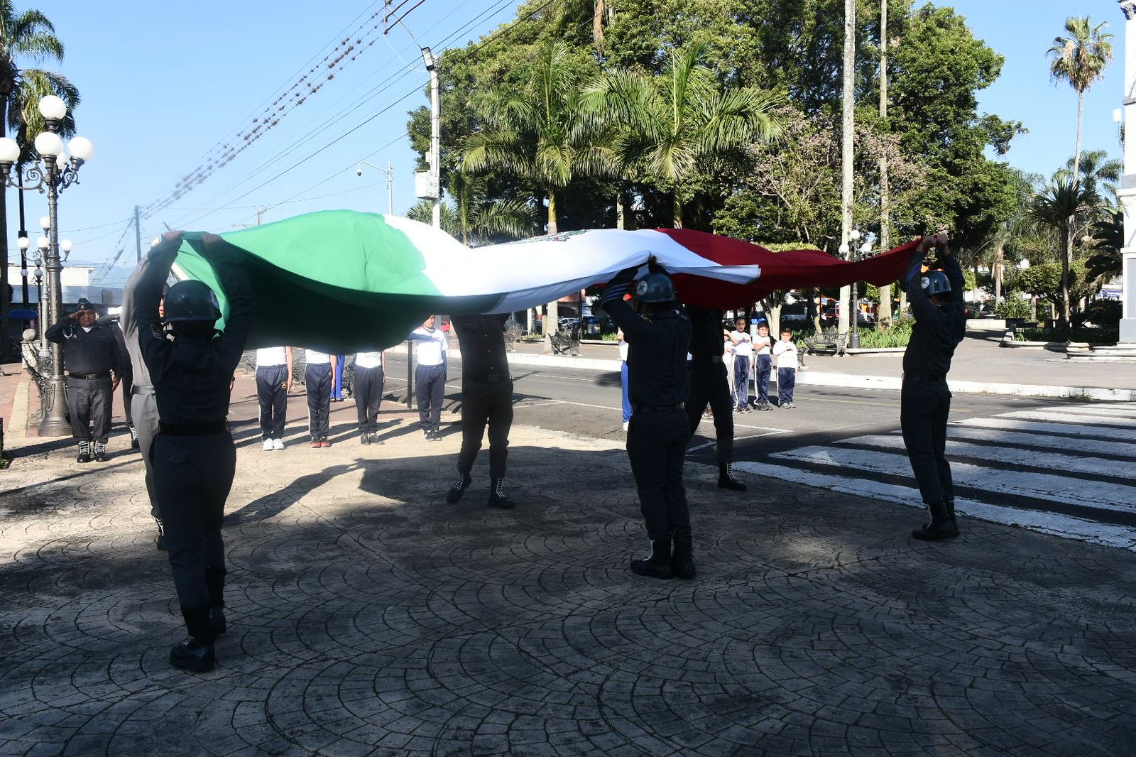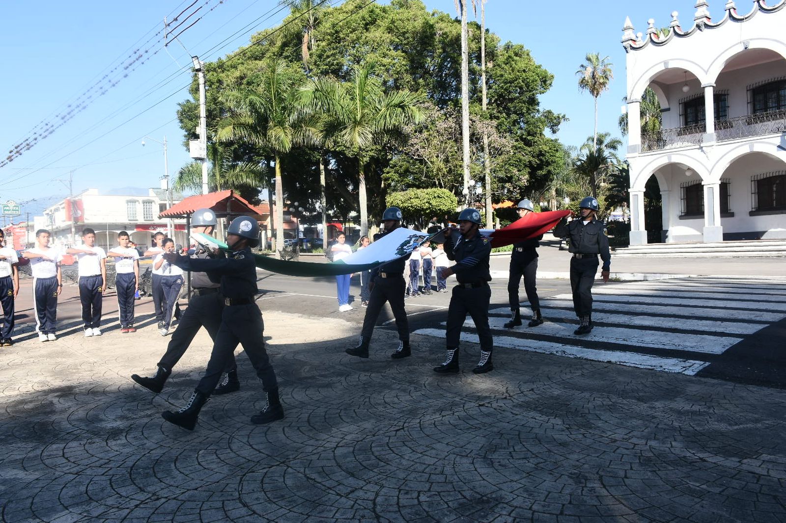 En la explanada del parque Lázaro Cárdenas se llevó a cabo el acto cívico la mañana de este domingo; los honores a la bandera estuvieron a cargo del Pentathlón Deportivo Militarizado Universitario sub-zona Fortín.