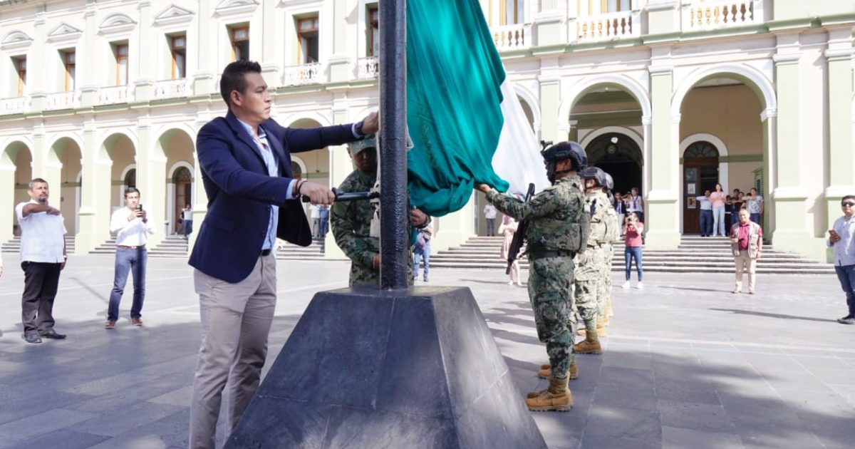 En esta ocasión, el Lábaro Patrio fue escoltado por elementos de la Marina para ser izada a media asta por el Regidor, Jonathan Francisco Rosas Blanco, posteriormente, el juramento estuvo a cargo de Luis Germán García Hernández.