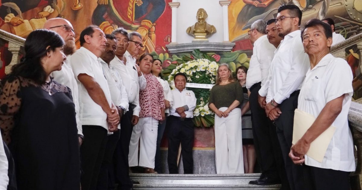 Al concluir el acto cívico, los integrantes del Cabildo y de la Masonería colocaron la ofrenda floral en el busto de Benito Juárez ubicado en el interior del Palacio Municipal, donde se llevó a cabo el toque de silencio.