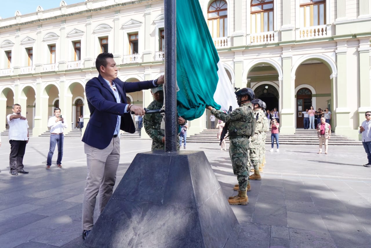En esta ocasión, el Lábaro Patrio fue escoltado por elementos de la Marina para ser izada a media asta por el Regidor, Jonathan Francisco Rosas Blanco, posteriormente, el juramento estuvo a cargo de Luis Germán García Hernández.