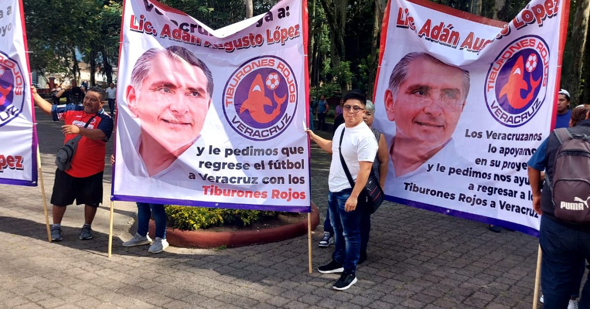 Una de las lonas que llevó la afición decía: “El Tiburón regresa a Veracruz con el apoyo de Adán Augusto López”.