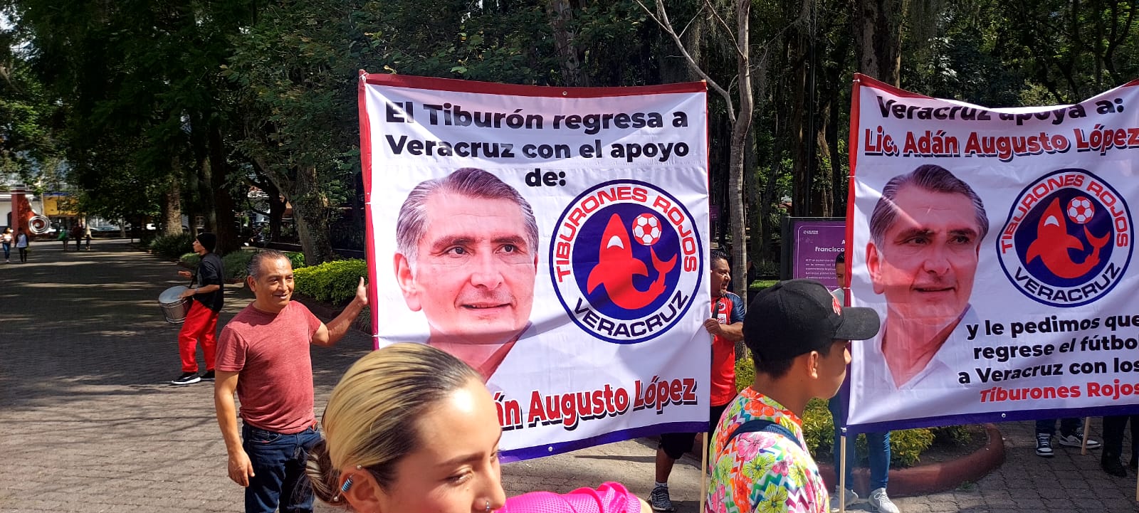 “Como afición del equipo le solicitamos que, si llega con nuestro apoyo a la presidencia, que regrese el Tiburón al estadio Luis Pirata Fuente, en el Puerto de Veracruz”, expresaron los seguidores del escualo a Adán Augusto, que abarrotó la explanada de la Alameda “Francisco Gabilondo Soler”.