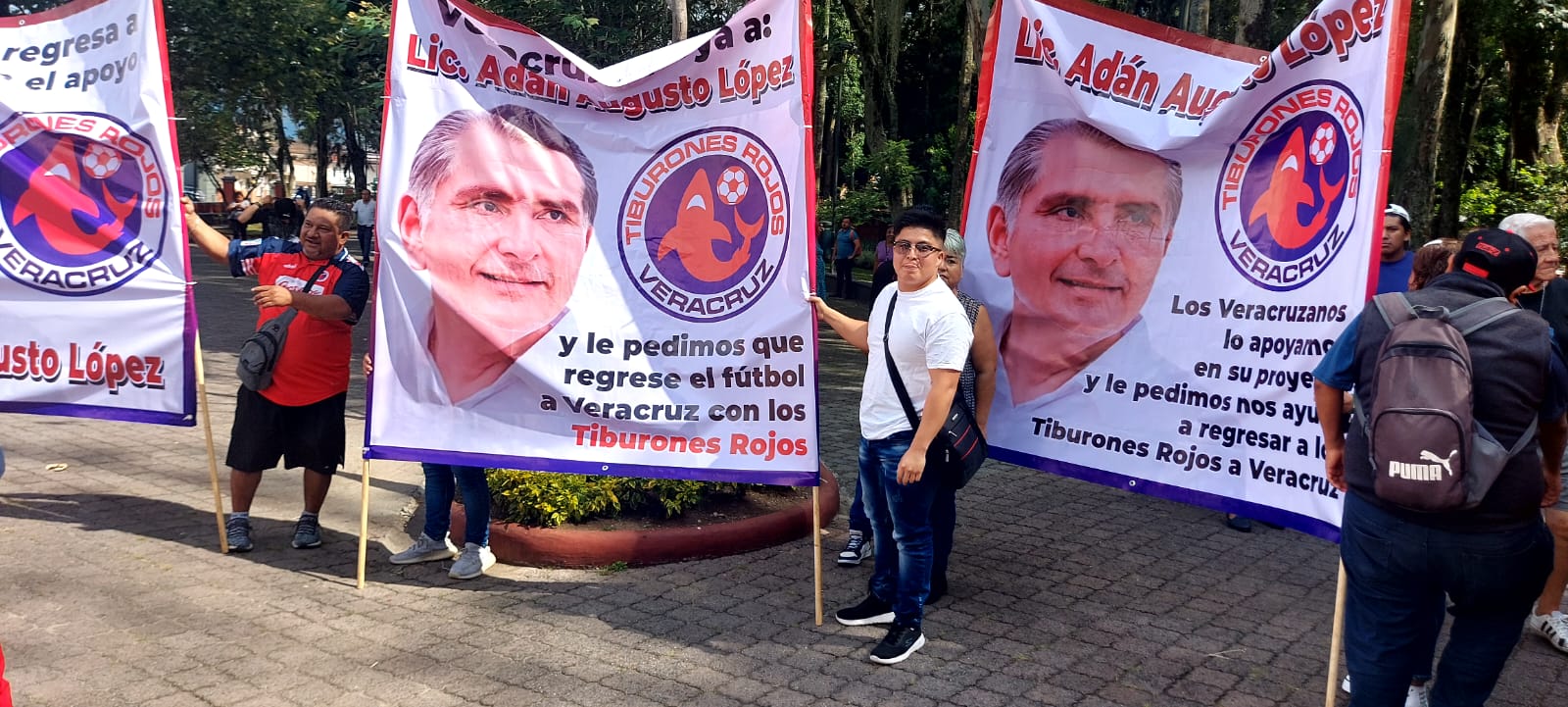 Una de las lonas que llevó la afición decía: “El Tiburón regresa a Veracruz con el apoyo de Adán Augusto López”.