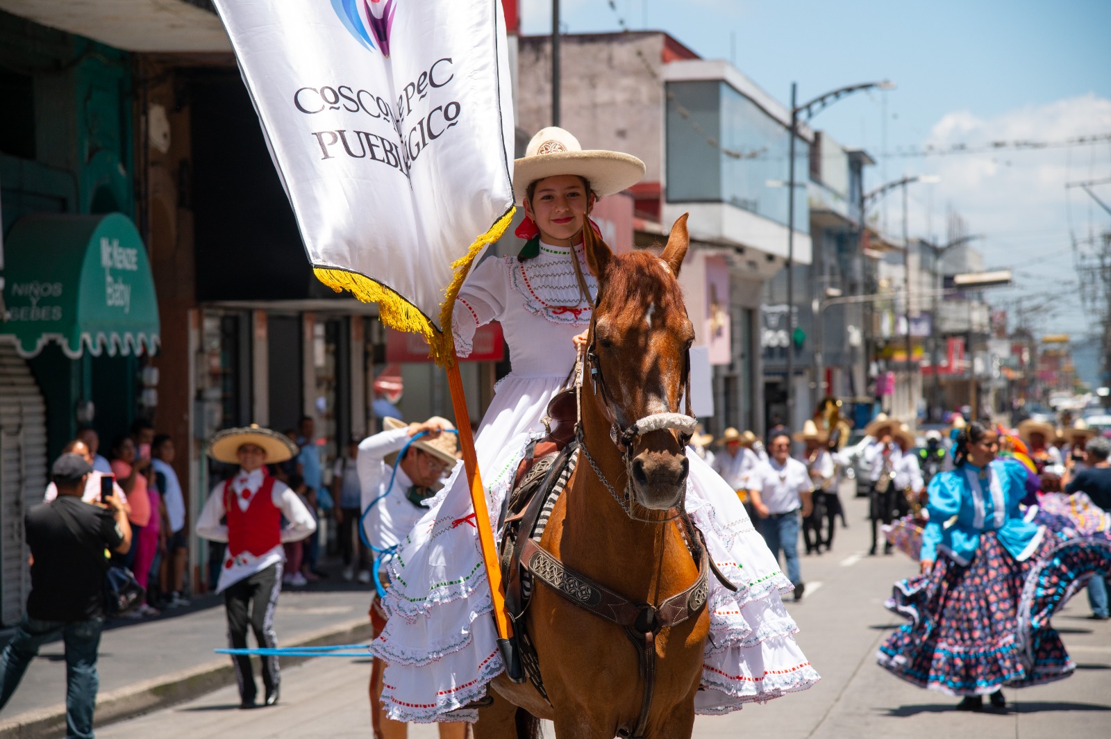 Desde las 12:00 del día, el contingente de la Secundaria y de Bachilleres “Vicente Guerrero”, encabezó el inicio de este desfile, que engalanó con la presentación de su Marching Band, seguido de las compañías Vidanza, San Francisco Toxpan y Nimbe, quienes se lucieron con su participación.