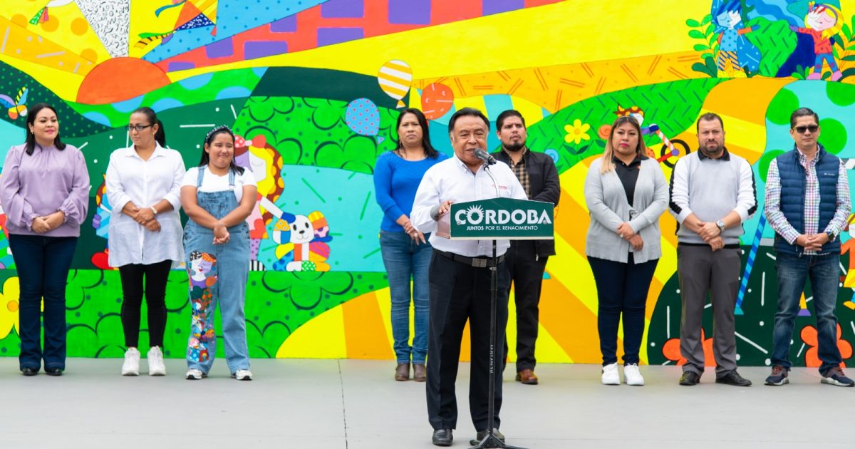 Córdoba, Ver., (17 de octubre del 2023).- Con una inversión aproximada de 400 mil pesos provenientes de recursos propios, el alcalde Juan Martínez Flores acompañado de la Sindica Única, Vania López González, inauguraron esta mañana la obra de rehabilitación del parque de San José, que destaca la creación de un mural denominado “Diviertete Cuidando” de la artista local, Daniela Martinez Ibarra.