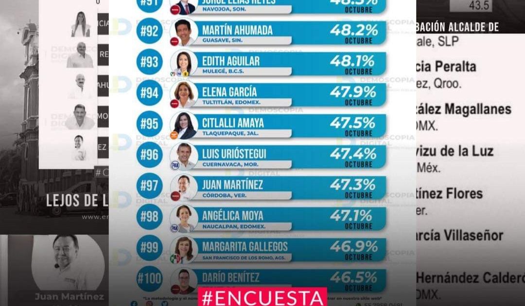 La Encuestadora Mitofsky confirma que el alcalde de Córdoba Juan Martínez Flores subió en el Rankin de los 150 alcaldes mejor