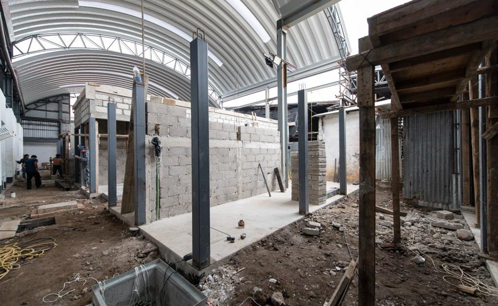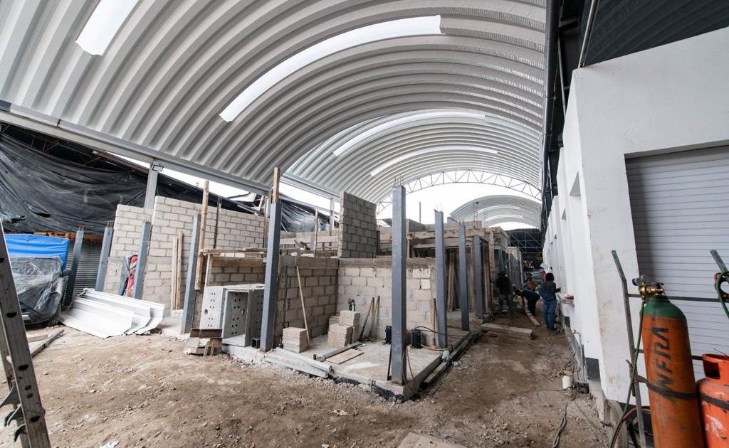 Asimismo, se avanza en nivelaciones del terreno para el área correspondiente de pasillo y colocado del mismo, además se están concluyendo las labores de fachada. Mientras que los trabajos en la red hidráulica y sanitaria han finalizado.