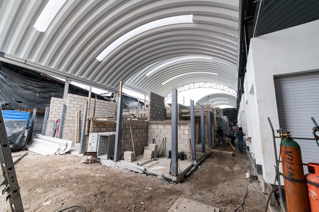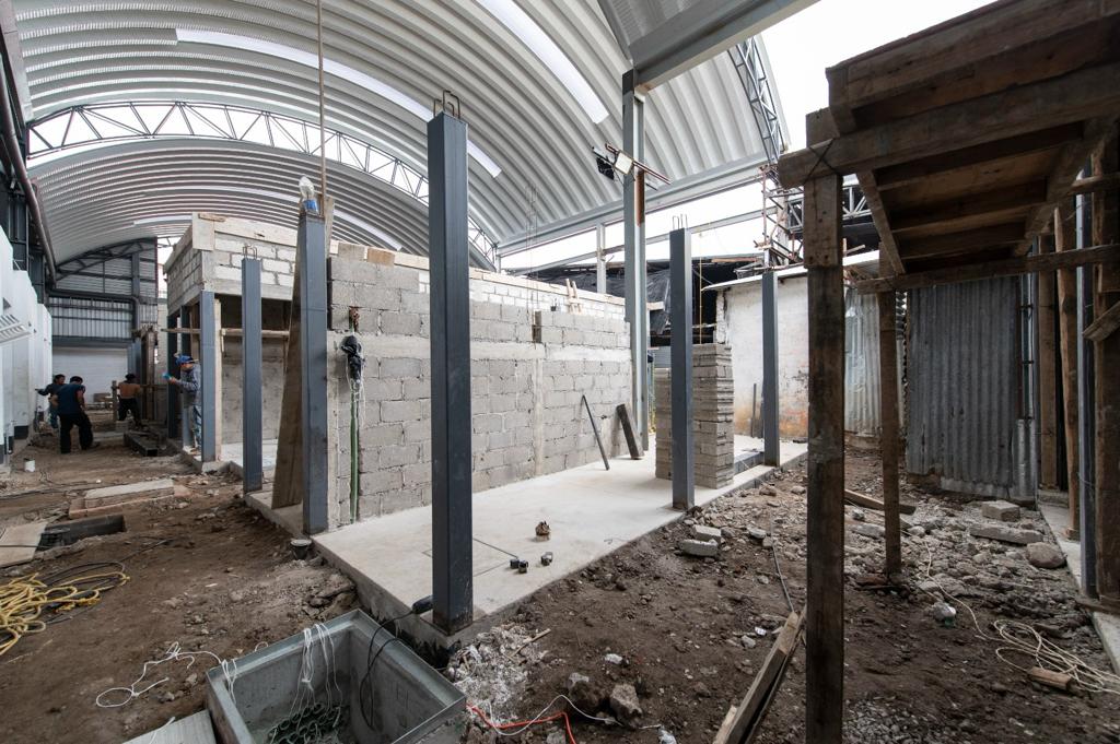 Asimismo, se avanza en nivelaciones del terreno para el área correspondiente de pasillo y colocado del mismo, además se están concluyendo las labores de fachada. Mientras que los trabajos en la red hidráulica y sanitaria han finalizado.