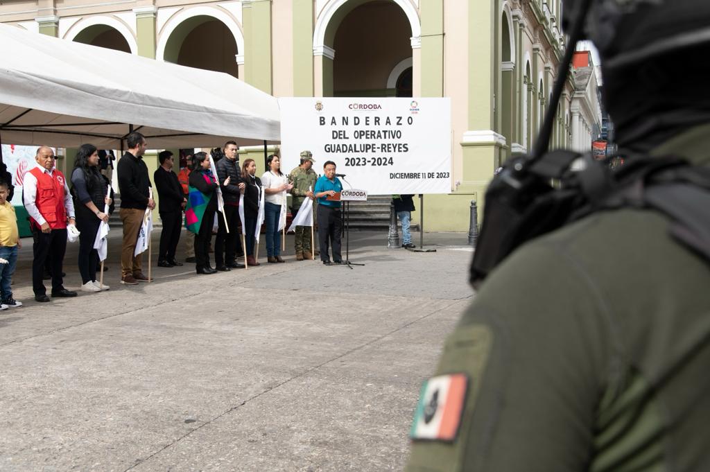 Córdoba, Ver., (11 de diciembre del 2023). – Encabezados por el Presidente Juan Martínez Flores, ediles del Ayuntamiento de Córdoba y cuerpos de auxilio, dieron el banderazo de inicio del operativo Guadalupe – Reyes que culminará el próximo 6 de enero, el cual se realiza en coordinación con los tres niveles de gobierno, a fin de salvaguardar la integridad de los ciudadanos y visitantes.