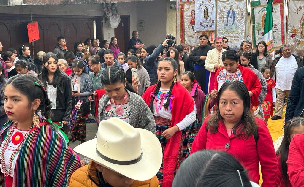Los devotos de las faldas del volcán Pico de Orizaba que acompañaron al obispo de Orizaba Eduardo Cervantes Merino, y la alcaldesa Ruth García Mesa, y que estuvieron durante la eucaristía en la parroquia adornada con 1.5 millones de flores mantienen vivo su amor y devoción por Santa María de Guadalupe.