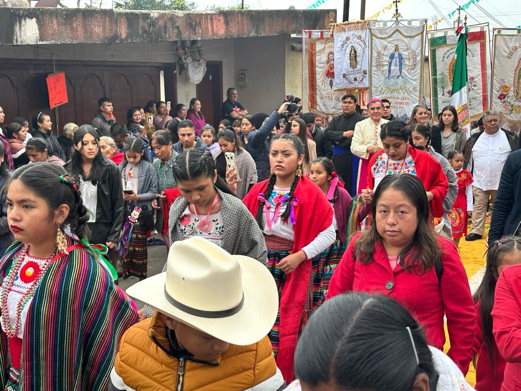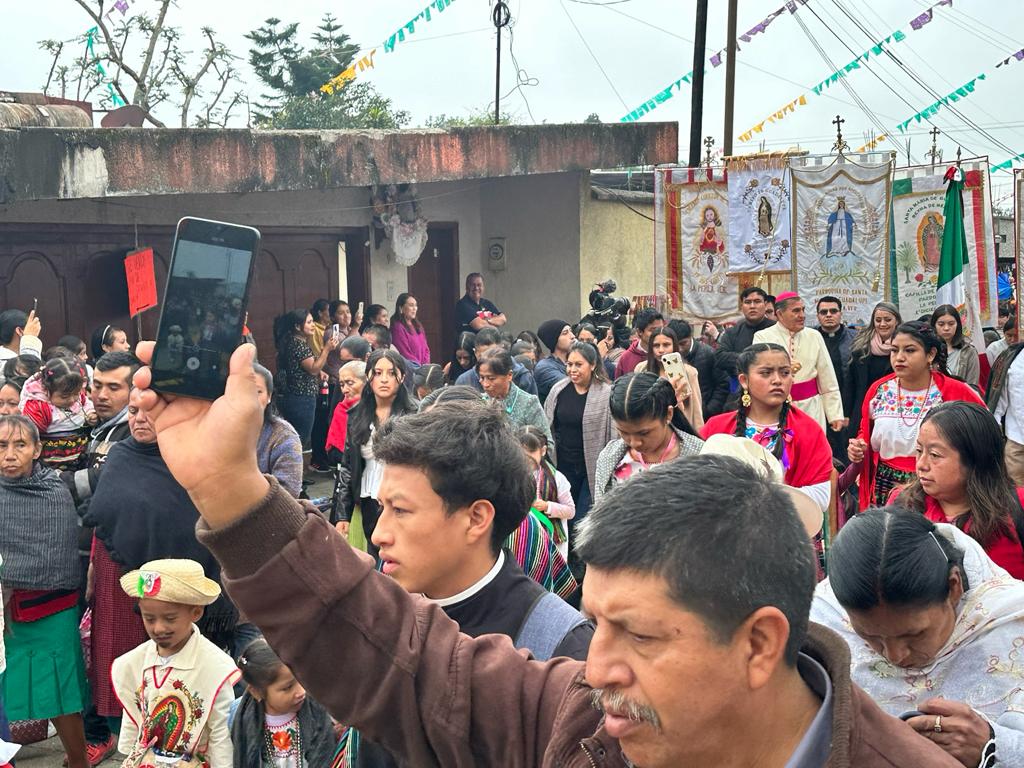 Los devotos de las faldas del volcán Pico de Orizaba que acompañaron al obispo de Orizaba Eduardo Cervantes Merino, y la alcaldesa Ruth García Mesa, y que estuvieron durante la eucaristía en la parroquia adornada con 1.5 millones de flores mantienen vivo su amor y devoción por Santa María de Guadalupe.
