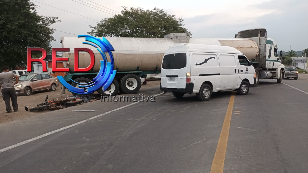 El accidente se registró la tarde de este miércoles, cuando el ahora finado circulaba en su motocicleta y en un momento determinado el conductor del tractocamión salía sin precaución de las “cachimbas” para continuar sobre la carretera federal, provocando el choque.