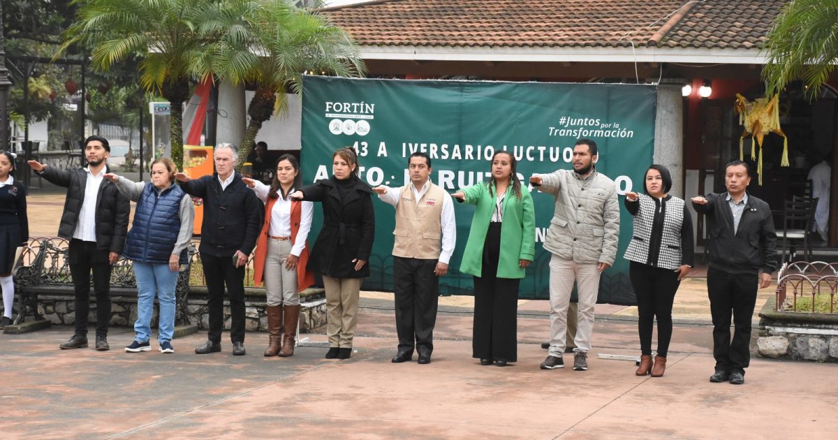 17 de enero de 2024, Fortín, Ver. – Con un acto cívico, autoridades municipales y educativas conmemoraron el 43 aniversario luctuoso de don Antonio Ruiz Galindo, en el cual el presidente municipal Gerardo Rosales Victoria reconoció el legado de este importante personaje para Fortín y a su vez el avance que ha tenido el proyecto de la Transformación.