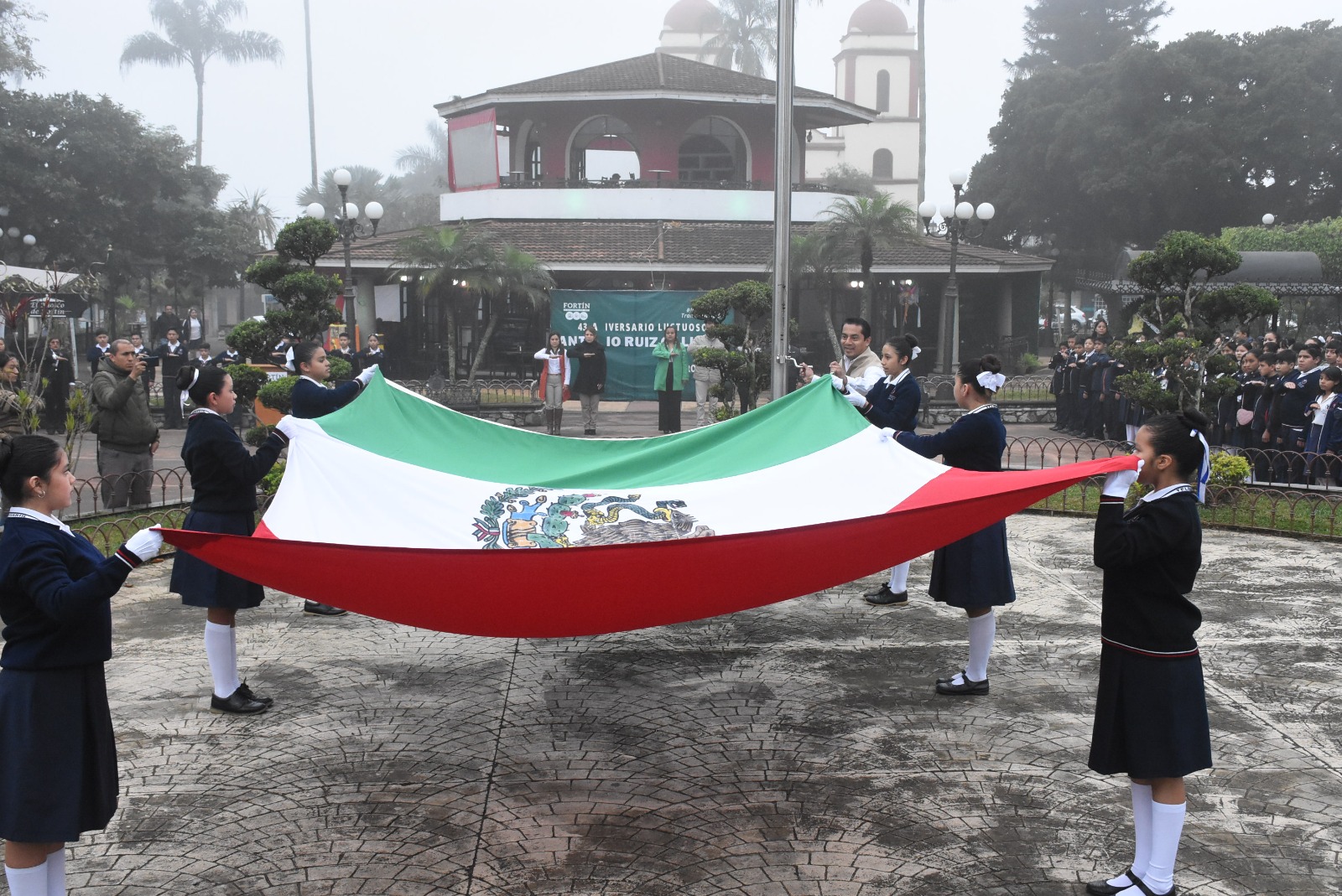 La escuela telesecundaria Antonio Ruiz Galindo a cargo de la profesora Dolores López Ventura, se encargó de los honores a la bandera asimismo de leer la reseña de don Antonio Ruiz Galindo.