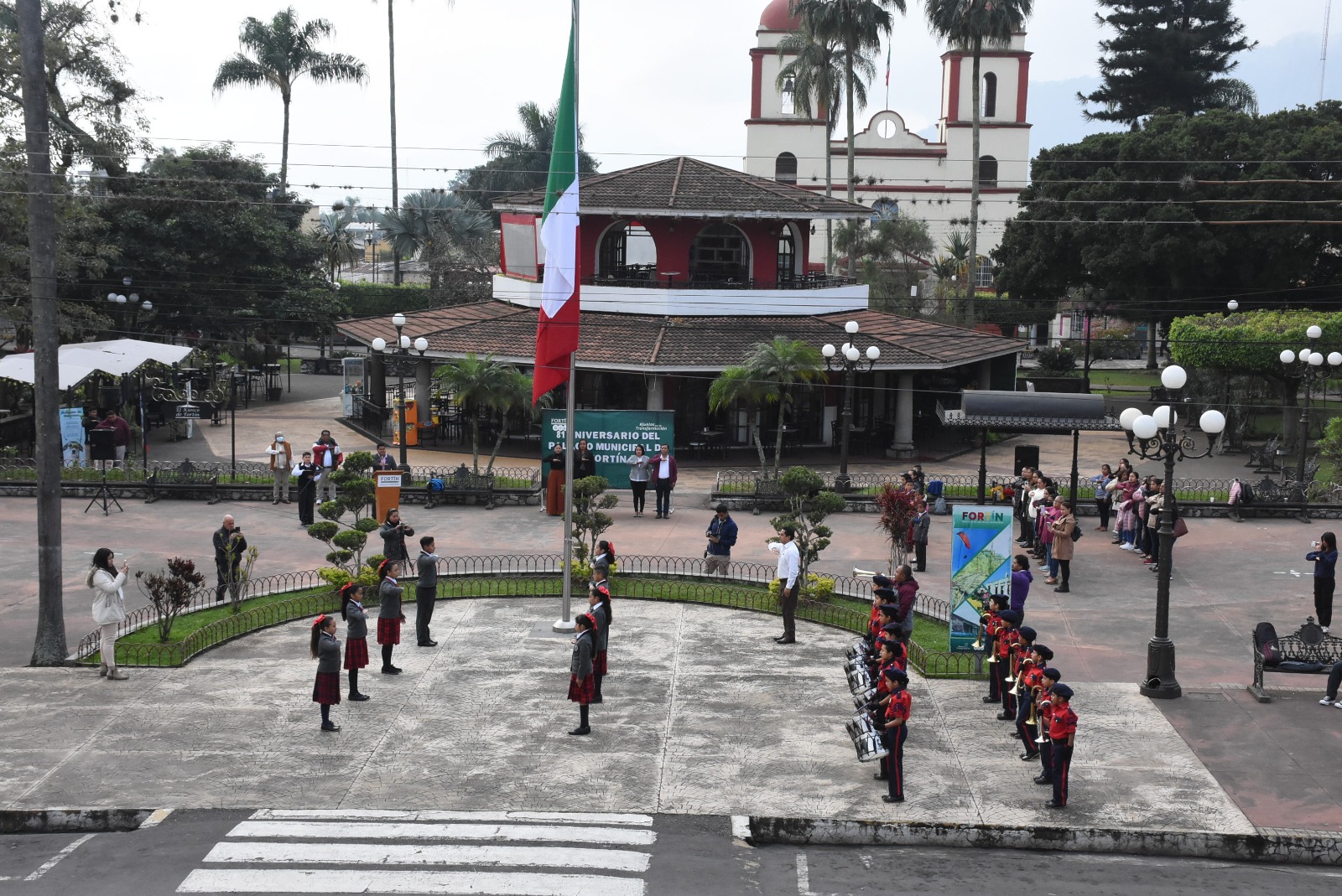 31 de enero de 2024, Fortín, Ver. – Bajo la consigna de mantener el legado de los fortinenses respecto a la unión y progreso, este miércoles se llevó a cabo el acto cívico correspondiente a la conmemoración del 81 aniversario de la edificación del palacio municipal, para lo cual la escuela primaria Lázaro Cárdenas del Río realizó los honores al lábaro patrio.