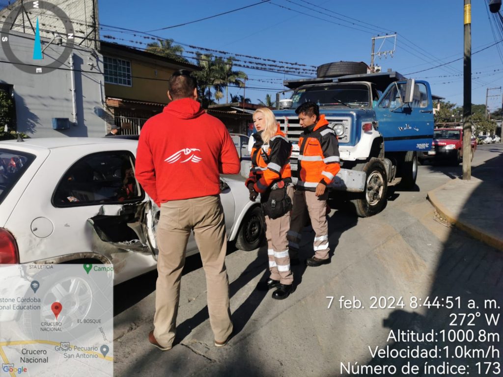 Fortín, Ver.- La mañana de este miércoles 7 de febrero se registró un accidente vehicular en la Calzada Tlacotengo a la altura de la empresa avícola San Antonio, donde el conductor de un Chevy invadió el carril contrario chocando de frente contra un camión de volteo.