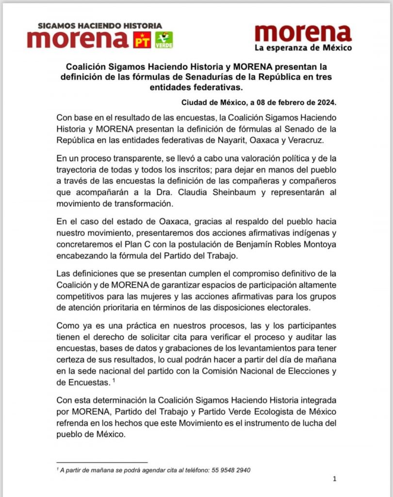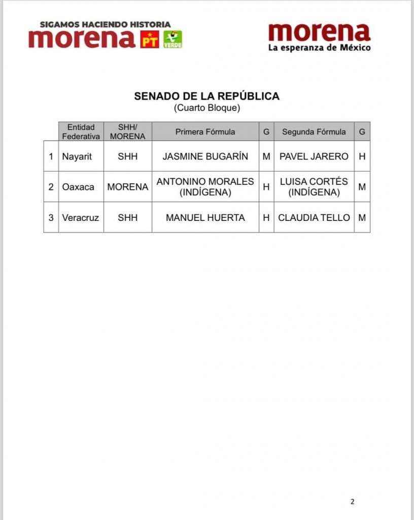 La Coalición Sigamos Haciendo Historia y Morena Sí ha designado las fórmulas a las Senadurías de la República en los siguientes tres estados.