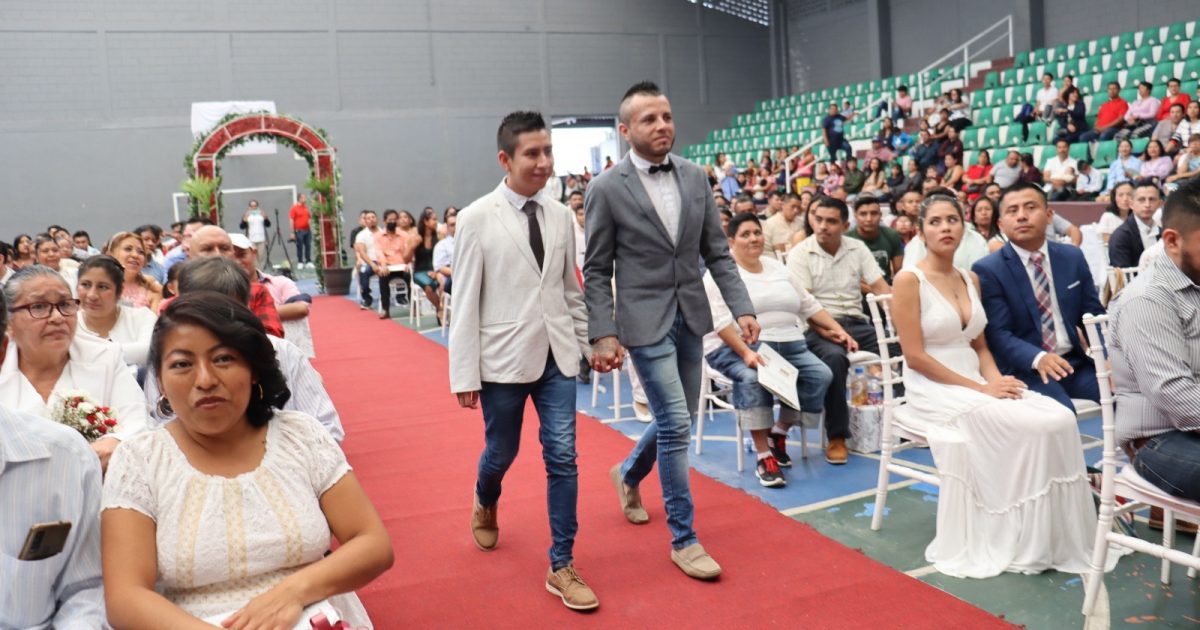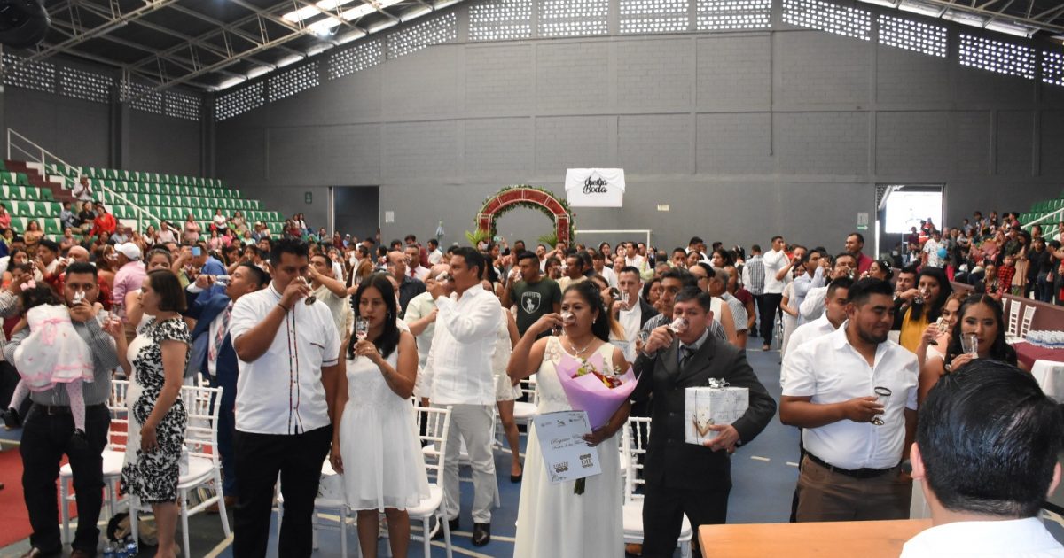 El auditorio de la unidad deportiva Eliezer Morales fue el escenario para que 92 parejas se dieran el “sí”, jóvenes, adultos mayores de la tercera edad y también parejas del mismo sexo nutrieron esta ceremonia, misma que estuvo llena de alegría, amor y sorpresas pues algunas parejas sellaron su amor con el anillo de compromiso.