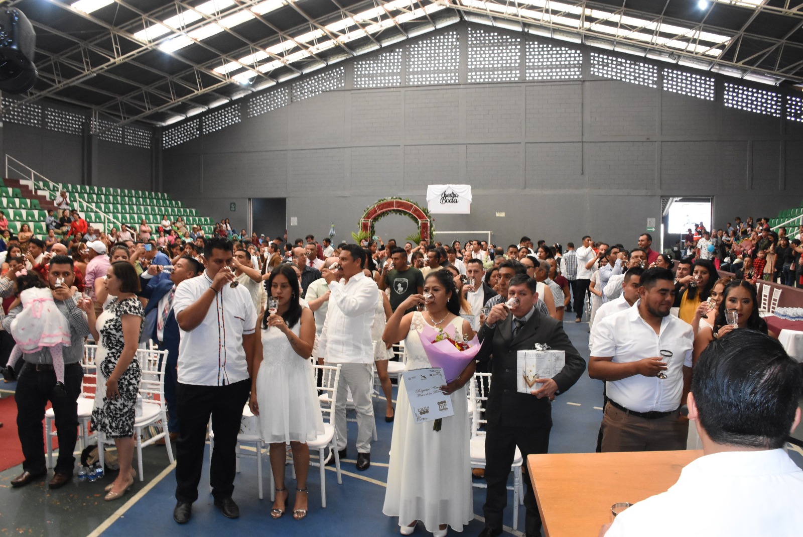 El auditorio de la unidad deportiva Eliezer Morales fue el escenario para que 92 parejas se dieran el “sí”, jóvenes, adultos mayores de la tercera edad y también parejas del mismo sexo nutrieron esta ceremonia, misma que estuvo llena de alegría, amor y sorpresas pues algunas parejas sellaron su amor con el anillo de compromiso.