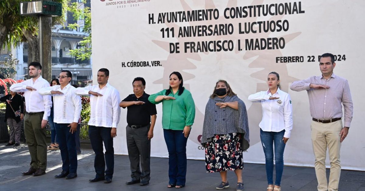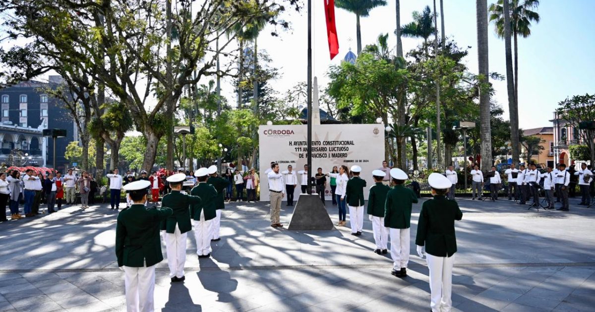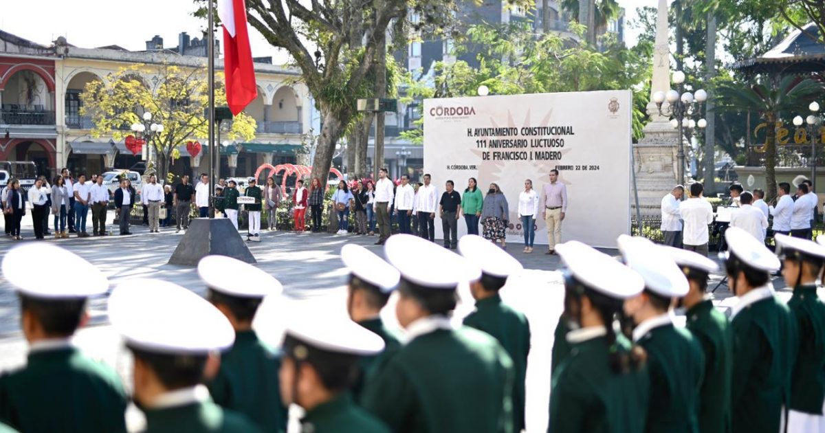 H. Córdoba, Ver. 22 de febrero del 2024.- Alumnos de la primaria “Francisco Hernández y Hernández” tuvieron a su cargo el programa del acto cívico para conmemorar el 111 Aniversario luctuoso de Francisco I. Madero, realizado en la explanada del parque 21 de mayo, el cual fue encabezado por el alcalde cordobés Juan Martínez Flores y regidores.