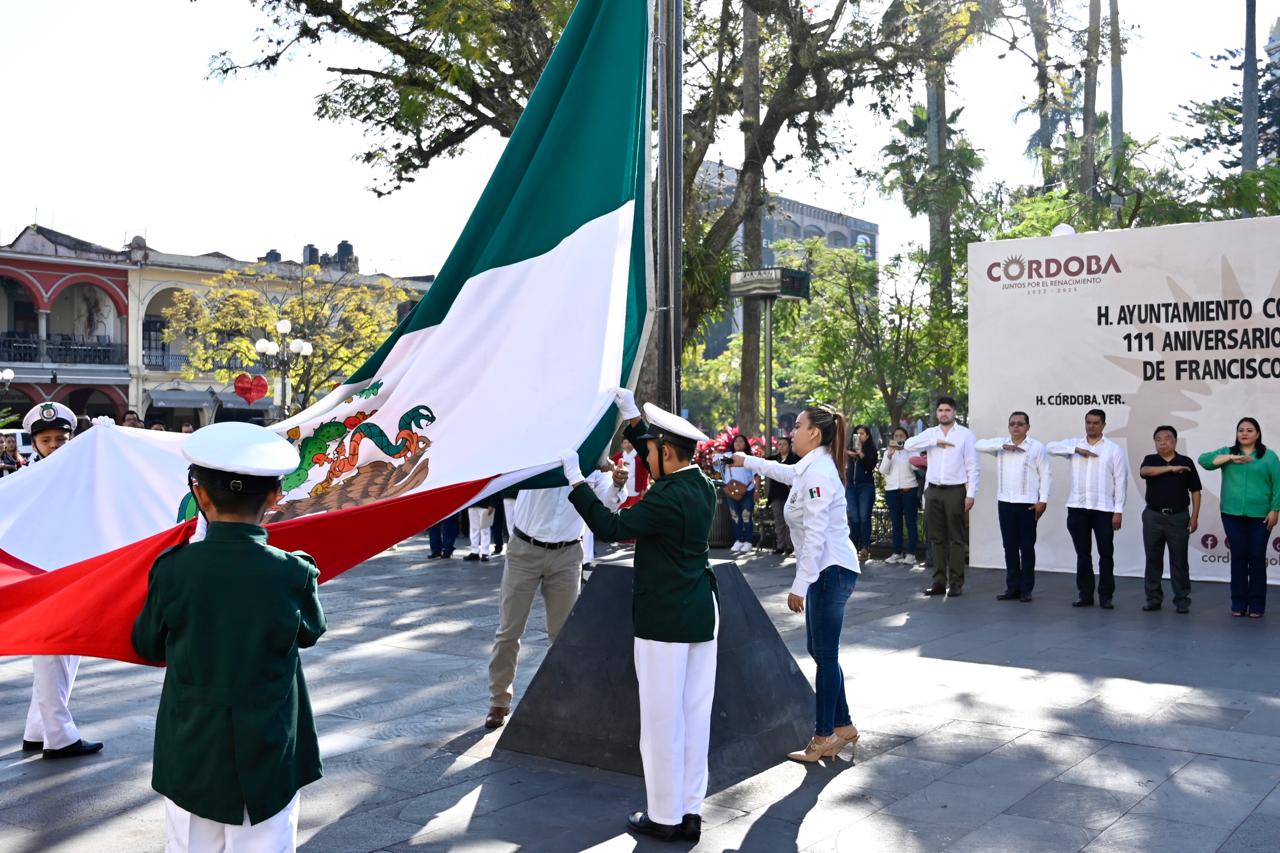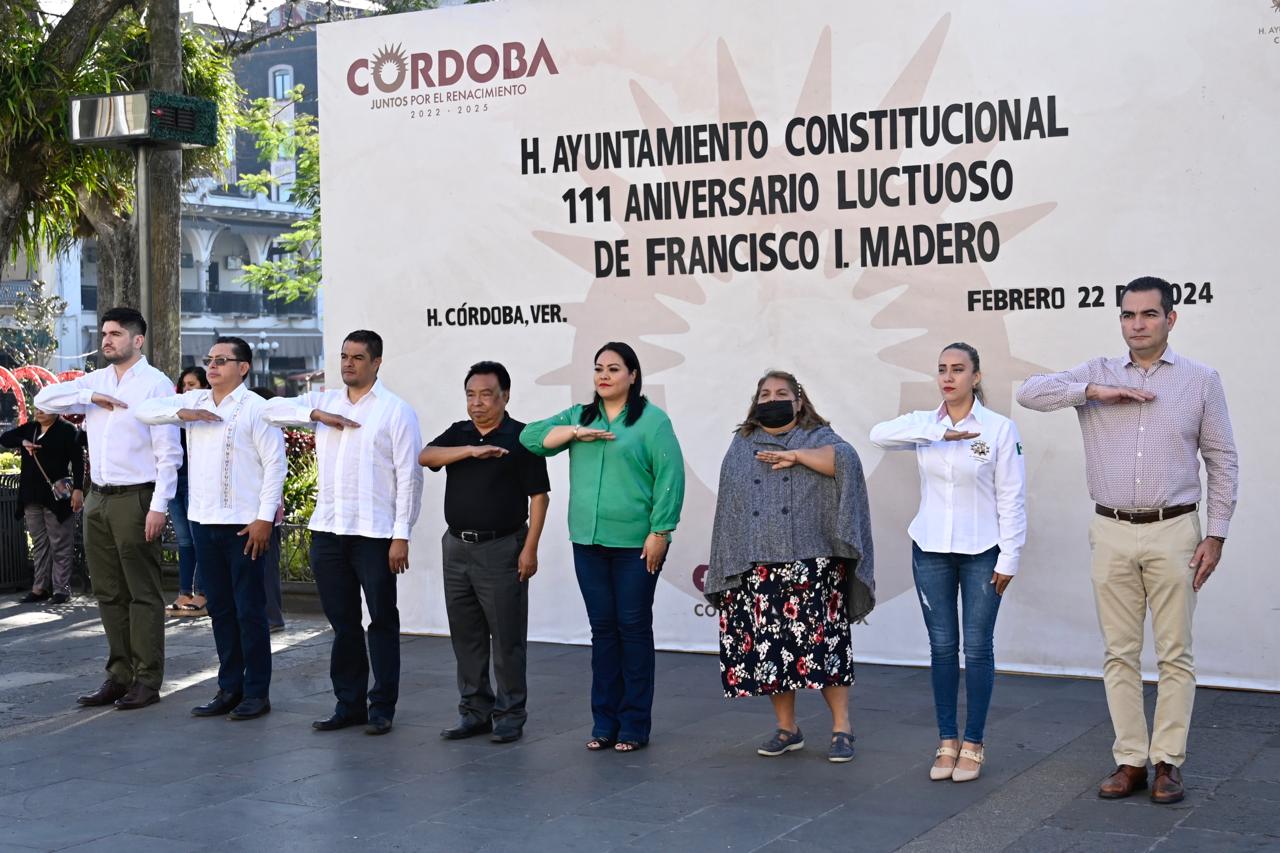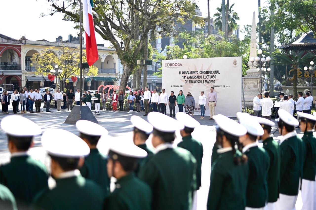 H. Córdoba, Ver. 22 de febrero del 2024.- Alumnos de la primaria “Francisco Hernández y Hernández” tuvieron a su cargo el programa del acto cívico para conmemorar el 111 Aniversario luctuoso de Francisco I. Madero, realizado en la explanada del parque 21 de mayo, el cual fue encabezado por el alcalde cordobés Juan Martínez Flores y regidores.