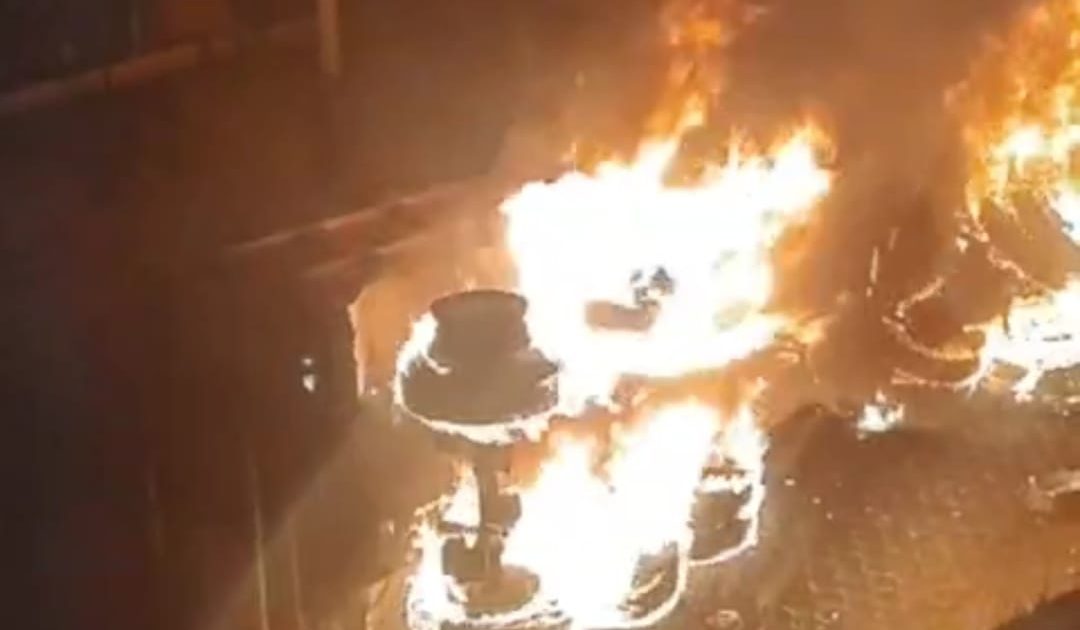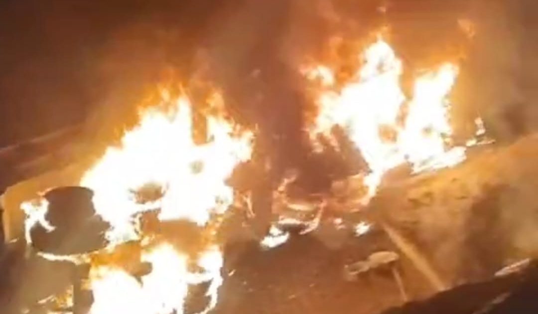 El tractocamión que remolcaba una tolva volcó en el camino y se incendió aunque no se reportaron personas lesionadas, solo la pérdida total de la unidad pesada.
