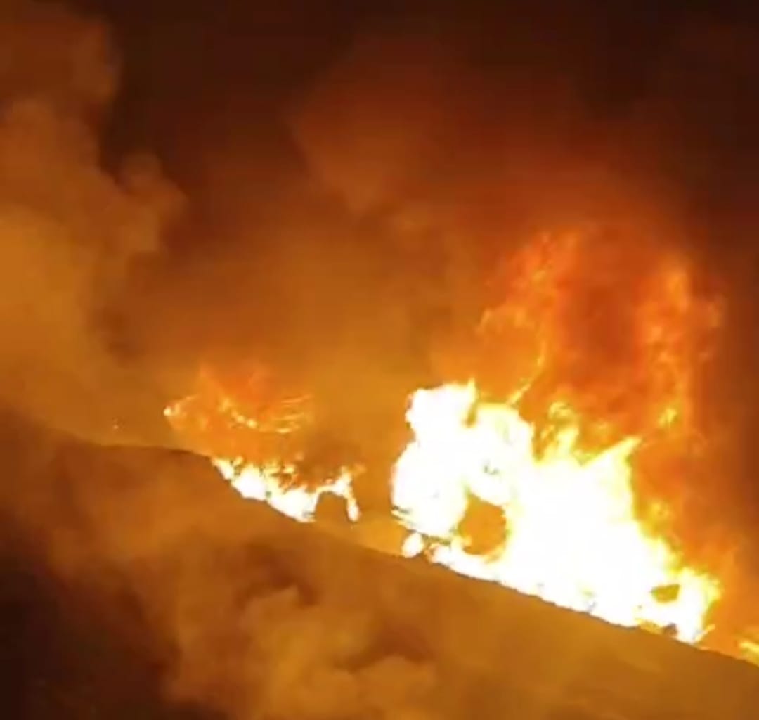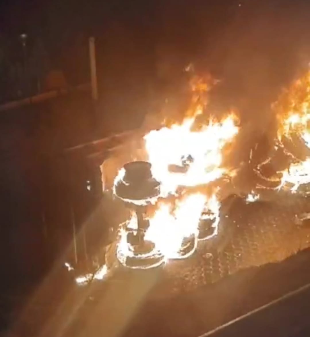 El tractocamión que remolcaba una tolva volcó en el camino y se incendió aunque no se reportaron personas lesionadas, solo la pérdida total de la unidad pesada.