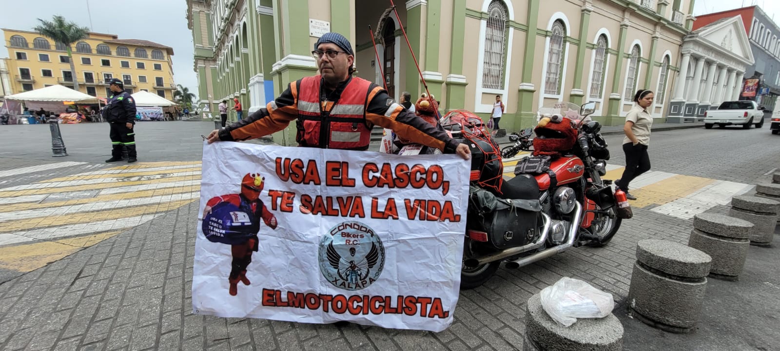 Córdoba, Ver. – Martín López Hernández conocido cómo “Elmo…tociclista”, quien es originario de Xalapa estuvo de visita en la ciudad de los 30 caballeros donde efectúa una campaña de concientización en el uso de casco y equipo de seguridad en los bikers, para lo cual entrega tripticos informativos de la importancia de usar los insumos necesarios para conducir una motocicleta.