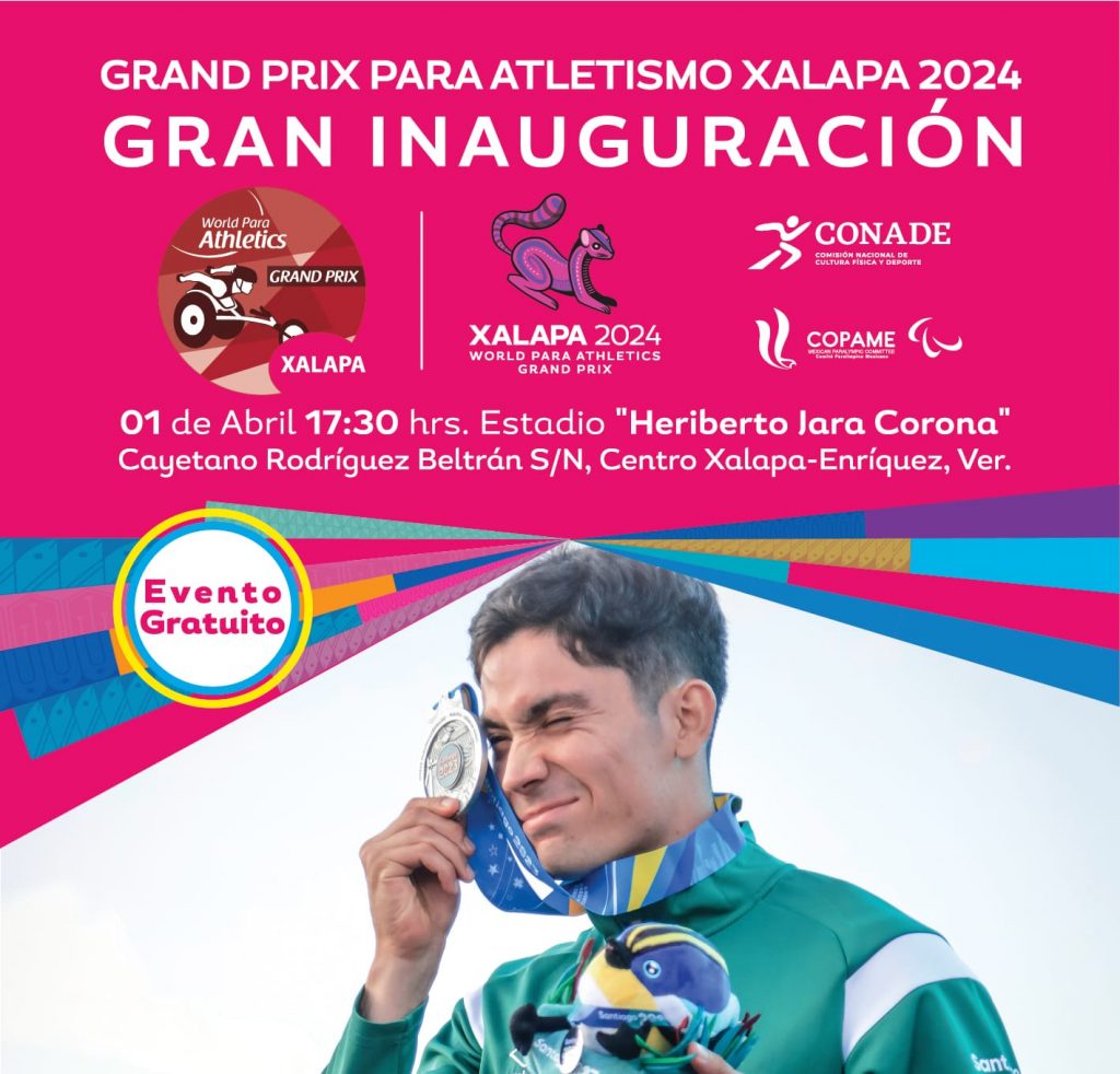 Xalapa, Ver., 30 de marzo de 2024.- Por segundo año consecutivo se vivirá una gran fiesta deportiva en el estadio “Heriberto Jara Corona”, el próximo 1 de abril durante la inauguración a las 17:30 horas de Xalapa 2024 World Para Athletics Grand Prix, con la participación de 492 atletas provenientes de 25 países.