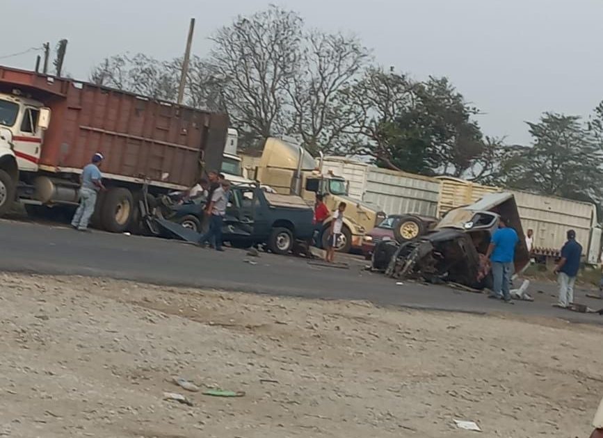 Cuitláhuac, Ver. – Dos personas muertas y seis mas lesionadas además de daños sin cuantificar, dejó un choque múltiple entre tres camionetas y un camión cañero en accidente registrado la tarde del martes 2 de abril en la carretera federal Córdoba-Veracruz a la altura del libramiento de Cuitláhuac, aproximadamente en el kilómetro 24.