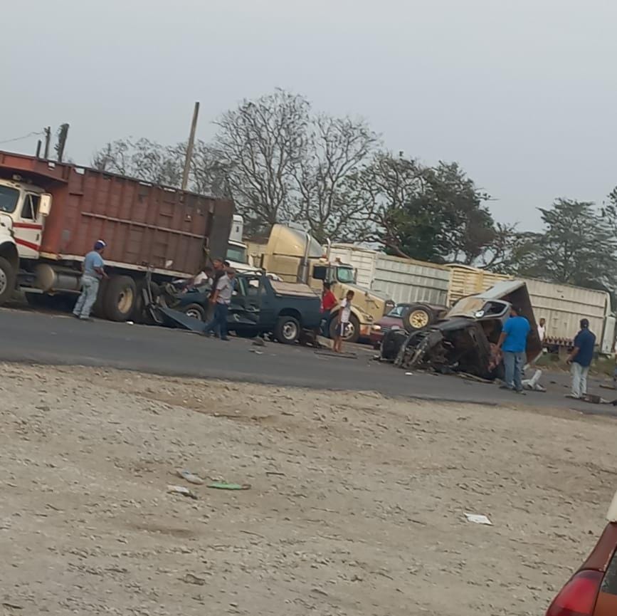 Cuitláhuac, Ver. – Dos personas muertas y seis mas lesionadas además de daños sin cuantificar, dejó un choque múltiple entre tres camionetas y un camión cañero en accidente registrado la tarde del martes 2 de abril en la carretera federal Córdoba-Veracruz a la altura del libramiento de Cuitláhuac, aproximadamente en el kilómetro 24.