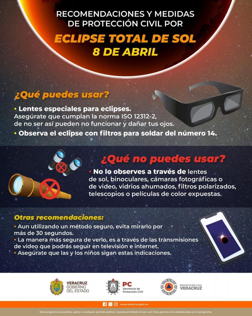 Será total en ciertas partes del Norte de México; sin embargo, en el caso de Veracruz, el eclipse será parcial, pero las recomendaciones son las mismas.