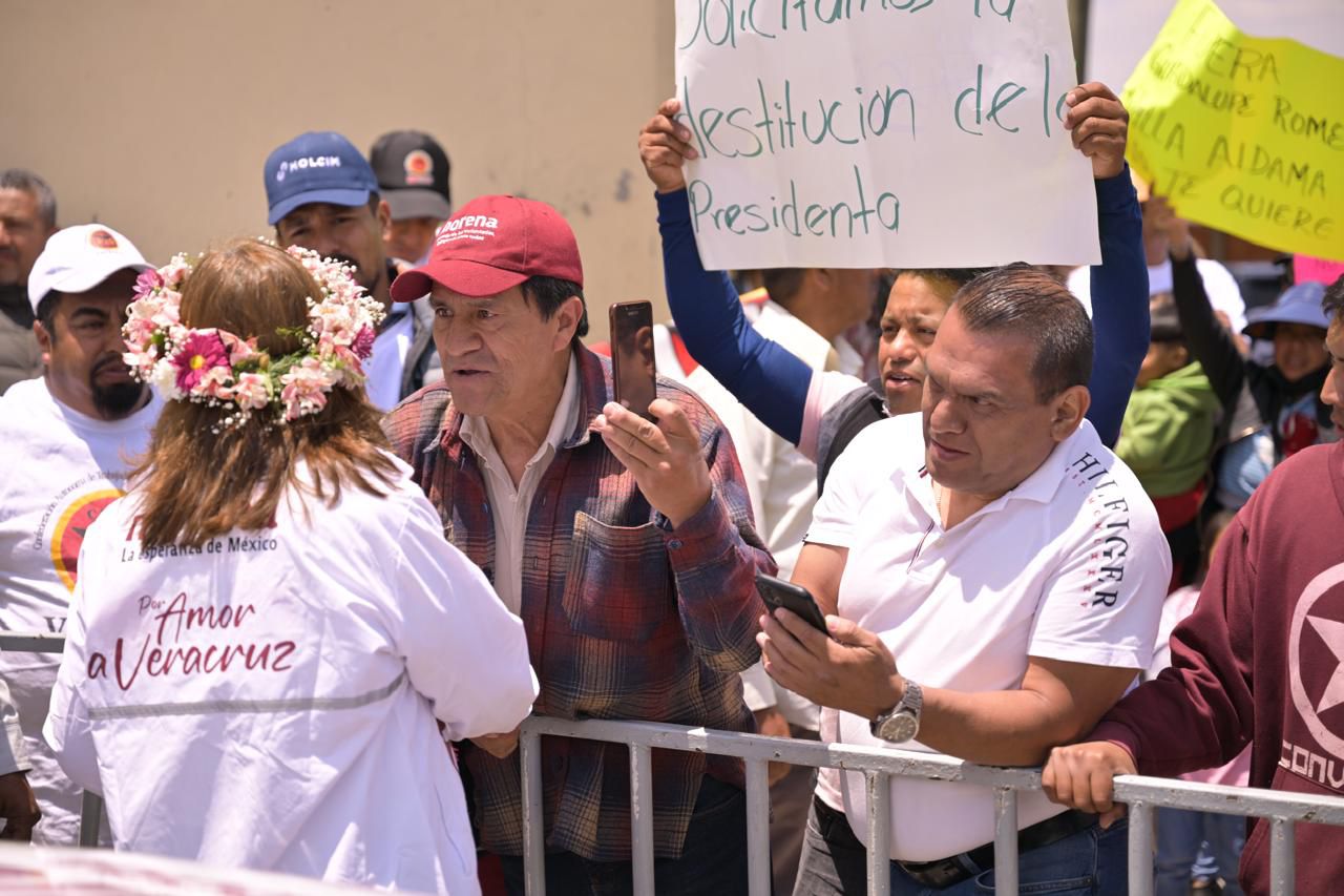 Villa Aldama, Ver., viernes 12 de abril de 2024.- Al grito de ¡fuera Lupe! ¡fuera Lupe!, habitantes del municipio de Villa Aldama pidieron hoy a la candidata de Morena a la gubernatura de Veracruz, Rocío Nahle García, intervenga para resolver un conflicto que sostienen con la alcaldesa, Guadalupe Romero Sánchez, a la que desde hace meses acusan de mantener una completa ingobernabilidad en el municipio, abuso de autoridad y corrupción.