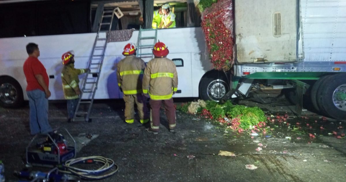 Cuitláhuac, Ver. – La madrugada de este viernes en la autopista México-Veracruz, se registró un accidente entre un autobus de la empresa turística del Sur y un tractocamión, dejando como resultado daños materiales cuantiosos y 35 personas heridas y personas algunas de ellas prensadas.