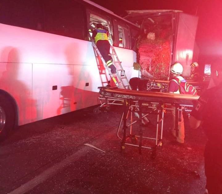 Se informa que el accidente se suscito alrededor de las 4:00 de la madrugada de este jueves cuando el autobús que procedía de la ciudad de Mexico, sufrió una falla en el sistema de frenos, por lo que llegó a impactarse contra el trailer de forma brutal y el autobús terminó destrozado en la parte de enfrente a la altura del kilómetro 14 de la autopista México-Veracruz.