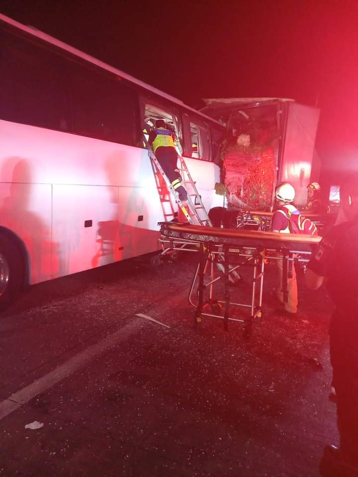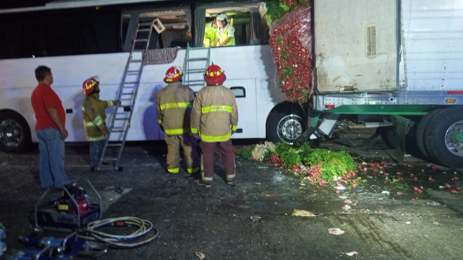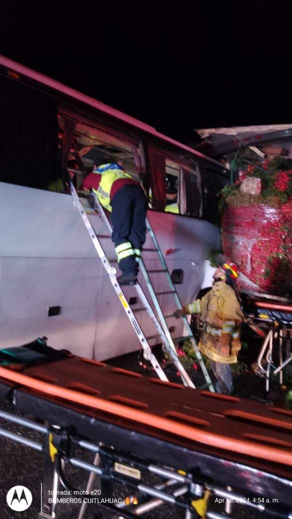 Se informa que el accidente se suscito alrededor de las 4:00 de la madrugada de este jueves cuando el autobús que procedía de la ciudad de Mexico, sufrió una falla en el sistema de frenos, por lo que llegó a impactarse contra el trailer de forma brutal y el autobús terminó destrozado en la parte de enfrente a la altura del kilómetro 14 de la autopista México-Veracruz.