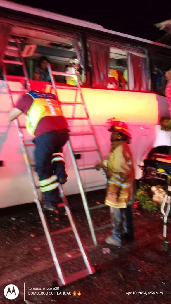Cuitláhuac, Ver. – La madrugada de este viernes en la autopista México-Veracruz, se registró un accidente entre un autobus de la empresa turística del Sur y un tractocamión, dejando como resultado daños materiales cuantiosos y 35 personas heridas y personas algunas de ellas prensadas.