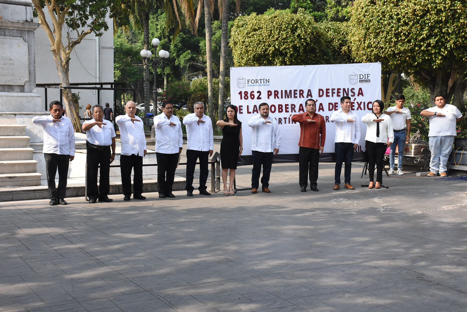 Reunidos en explanada del parque Venustiano Carranza frente al monumento El Águila, se llevó a cabo este acto protocolario en el cual también estuvieron presentes miembros de la Logia Masónica Metlac 39 quienes a través de una reseña histórica recordaron aquél hecho que marcó la historia de este municipio el 19 de abril de 1862.