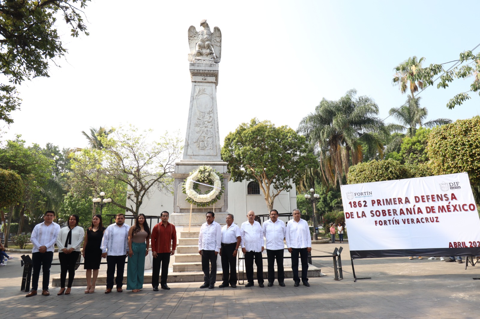 19 de abril de 2024, Fortín, Ver. – Con un acto cívico, la mañana de este viernes, las autoridades municipales encabezaron el 162 aniversario de la conmemoración de la primera defensa de la Soberanía de México, que aconteció en Fortín, la escuela de bachillerato COBAEV 56 estuvo a cargo de los honores a la bandera.
