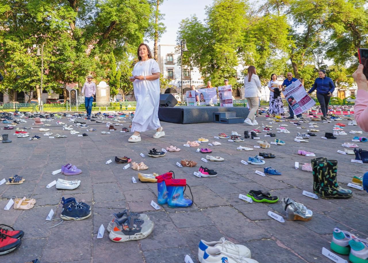 La mañana de este domingo, la ingeniera asistió a la Plaza del Caballito en Morelia, Michoacán, donde asociaciones civiles colocaron decenas de zapatos en representación de los 13 mil 431 niños asesinados en hechos violentos durante este sexenio.