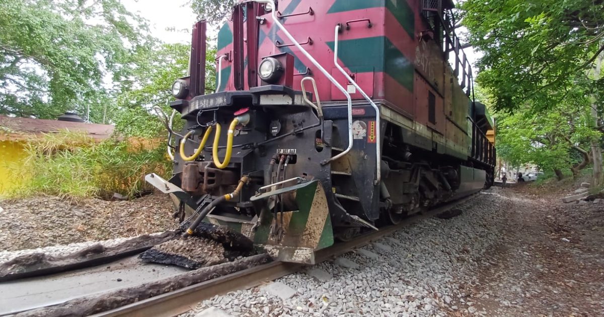 El accidente se registró cuando la locomotora circulaba sobre las vías del ferrocarril y al llegar al tramo mencionado presuntamente por falta de mantenimiento sobre los durmientes, algunos de ellos se “vencieron” provocando que la locomotora con la parte del frente levantara parte del asfalto y pavimento que se encuentra en medio de ambos rieles.