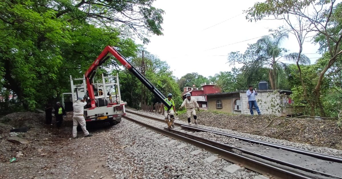 Córdoba, Ver. – La tarde de este martes 23 de abril, en el tramo que comprende entre la calle 5 y calle 9 sobre la vía del ferrocarril, en la Colonia Brillante Crucero, se registró un incidente en donde una locomotora y algunos vagones que arrastraba, estuvieron a punto de descarrilarse debido a un desperfecto en las vías.