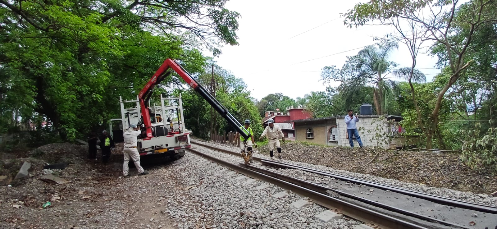 Córdoba, Ver. – La tarde de este martes 23 de abril, en el tramo que comprende entre la calle 5 y calle 9 sobre la vía del ferrocarril, en la Colonia Brillante Crucero, se registró un incidente en donde una locomotora y algunos vagones que arrastraba, estuvieron a punto de descarrilarse debido a un desperfecto en las vías.