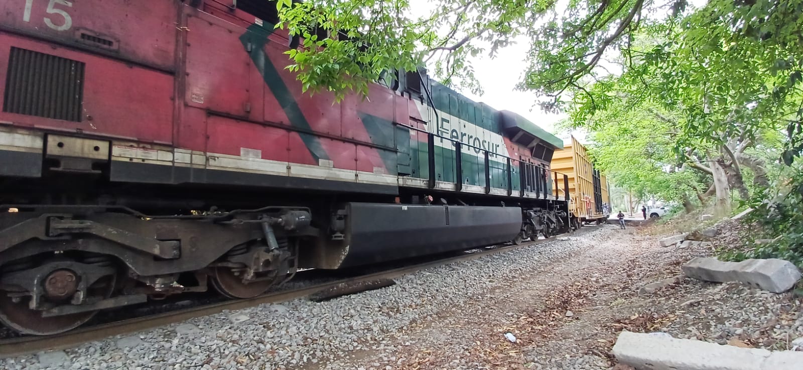 El accidente se registró cuando la locomotora circulaba sobre las vías del ferrocarril y al llegar al tramo mencionado presuntamente por falta de mantenimiento sobre los durmientes, algunos de ellos se “vencieron” provocando que la locomotora con la parte del frente levantara parte del asfalto y pavimento que se encuentra en medio de ambos rieles.
