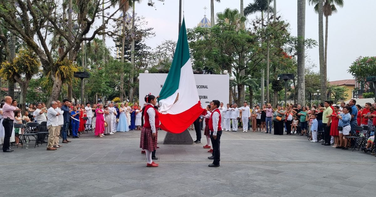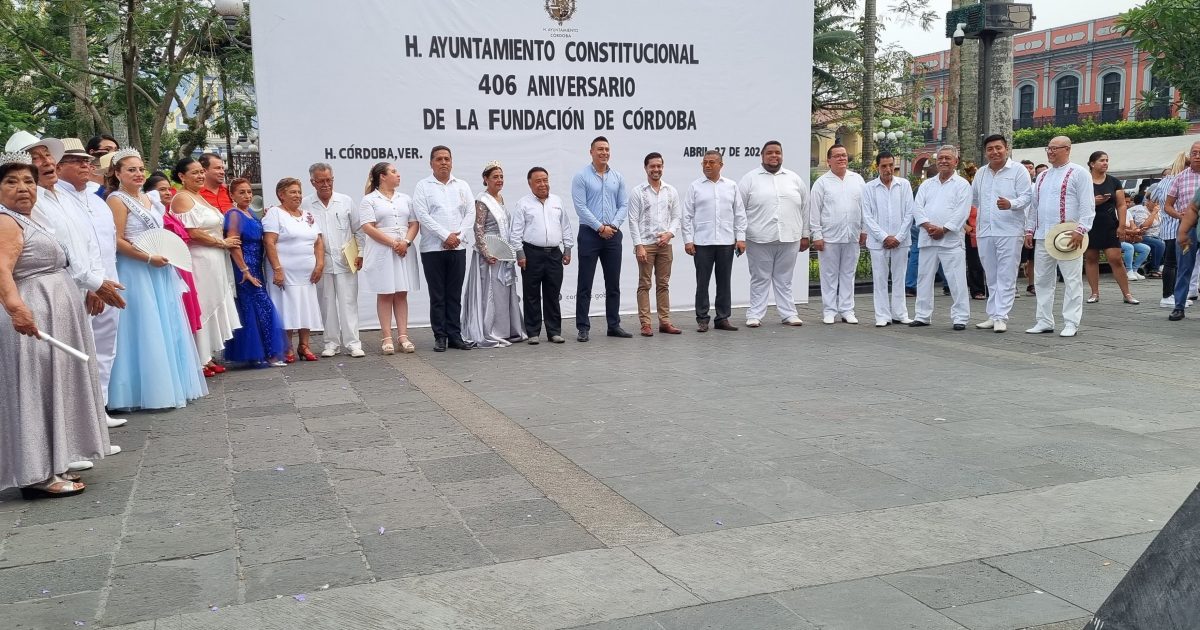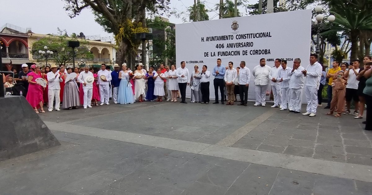 H. Córdoba, Ver. 27 de abril de 2024.- La plaza del parque 21 de Mayo lució pletórica de cordobeses, quienes se dieron cita esta tarde al arrío de bandera correspondiente a la ceremonia por el 406 aniversario de la fundación de la Villa de Córdoba. Danzoneros que celebraban su 30 aniversario y público en general, se sumaron a los festejos de la ciudad de los 30 Caballeros.