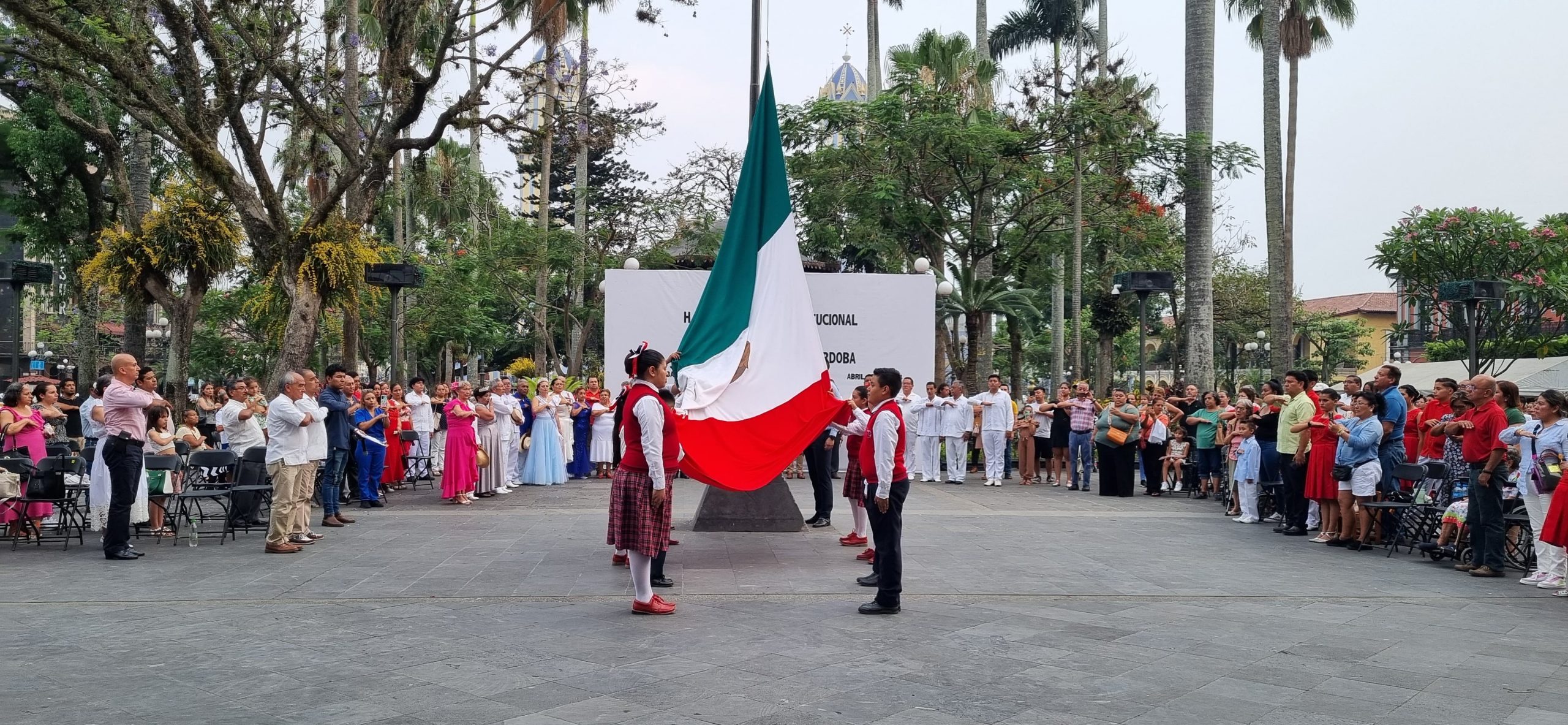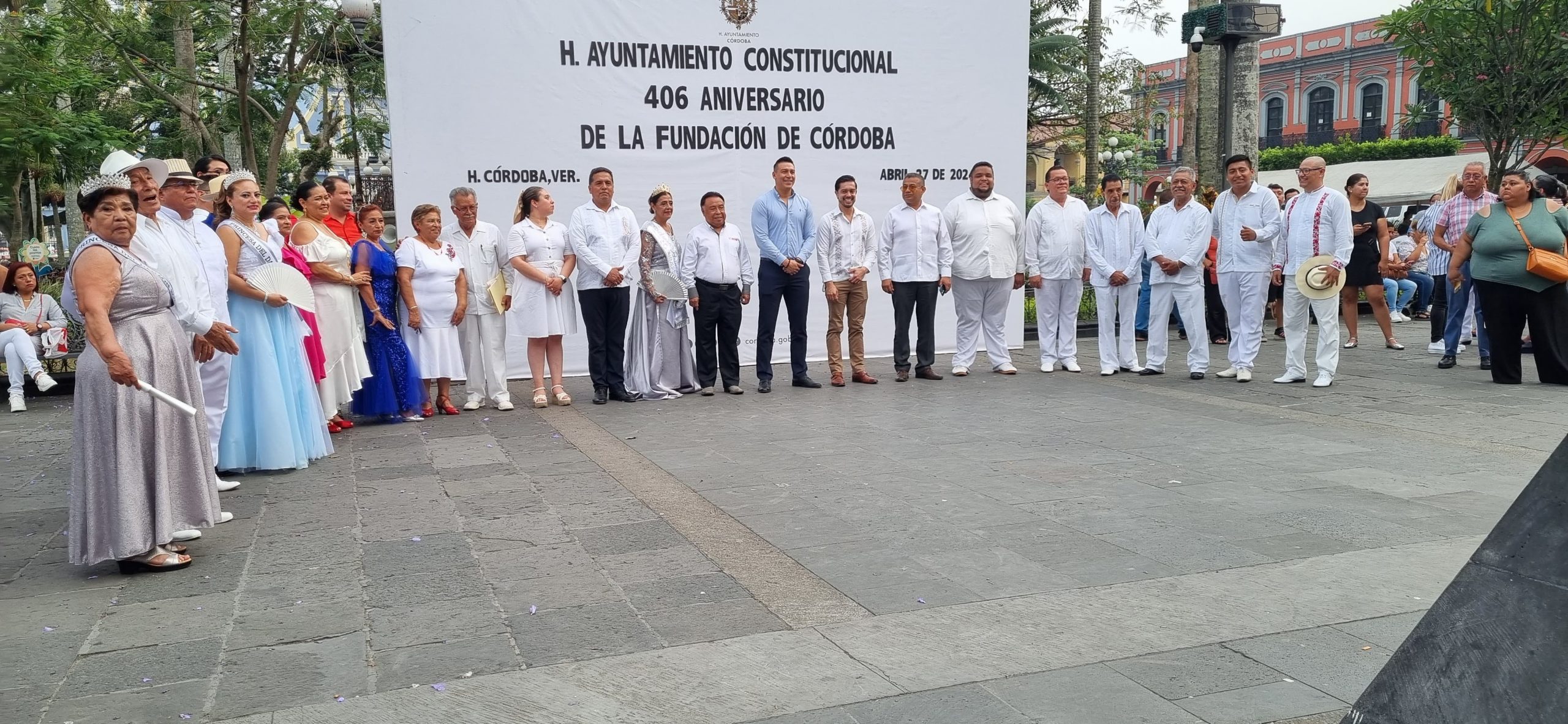 H. Córdoba, Ver. 27 de abril de 2024.- La plaza del parque 21 de Mayo lució pletórica de cordobeses, quienes se dieron cita esta tarde al arrío de bandera correspondiente a la ceremonia por el 406 aniversario de la fundación de la Villa de Córdoba. Danzoneros que celebraban su 30 aniversario y público en general, se sumaron a los festejos de la ciudad de los 30 Caballeros.