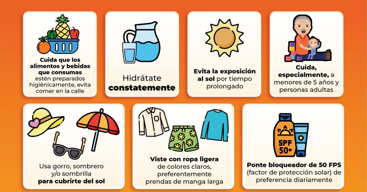 A la par que la Secretaria de Protección Civil del Estado, las recomendaciones que se emiten ante la ola de calor son:
