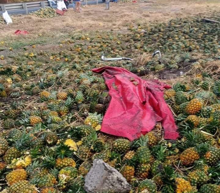 De inmediato al sitio aparecieron de la nada los llamados “rapiñeros” quienes hurtaron las más de 20 toneladas de piña que transportaban y eran transportadas de Tres Valles a Orizaba.