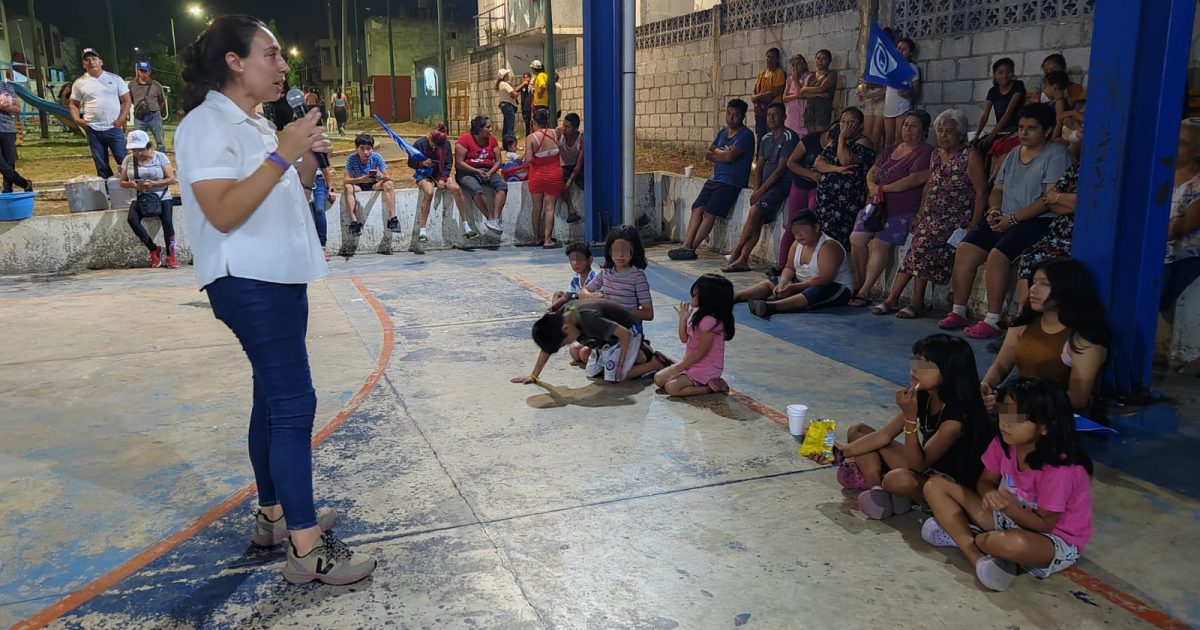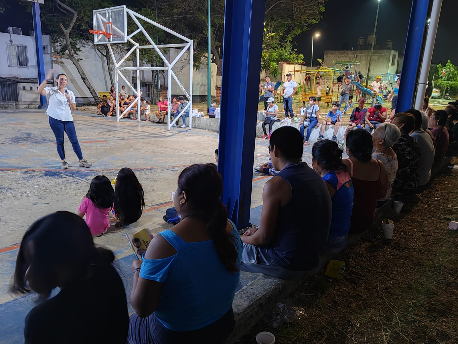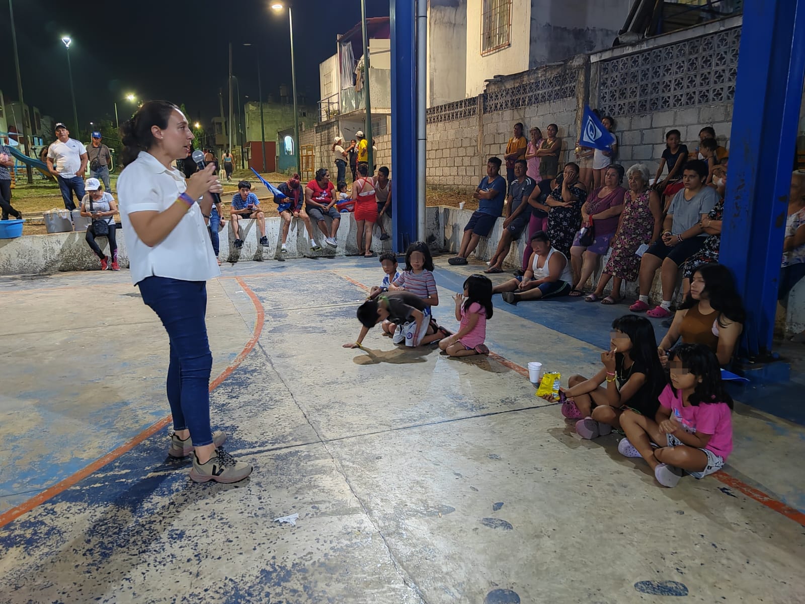 Mariana Ríos, la noche de este lunes estuvo conviviendo con jóvenes y familias de la colonia Tratados de Córdoba, quienes la recibieron con mucho cariño para escuchar sus propuestas para llegar al Congreso del Estado.