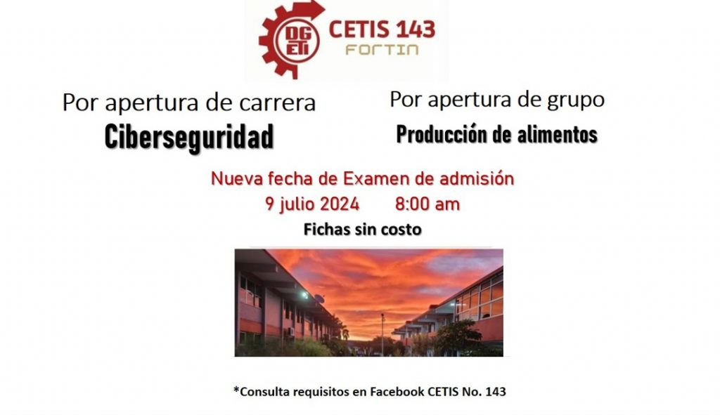 Este próximo 9 de julio El examen de admisión, más informes en https://www.facebook.com/cetis143oficial?mibextid=ZbWKwL